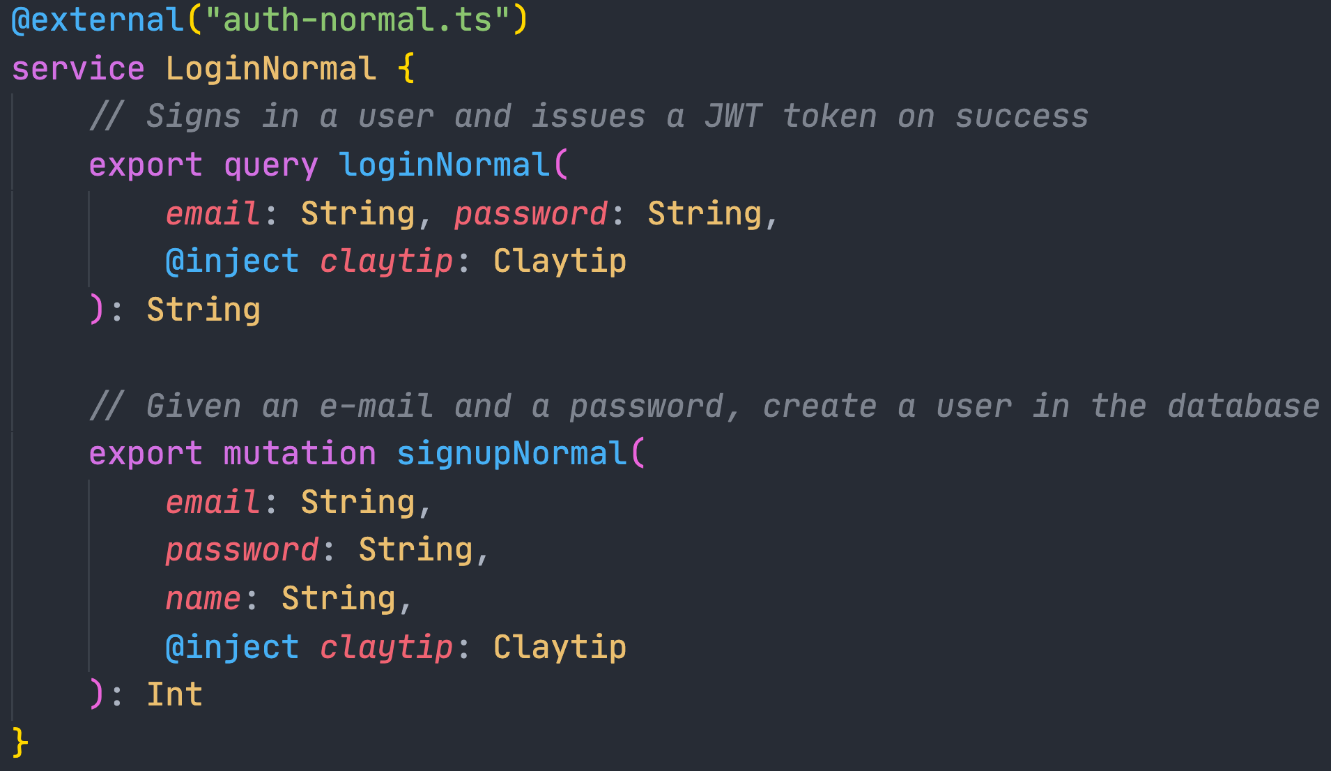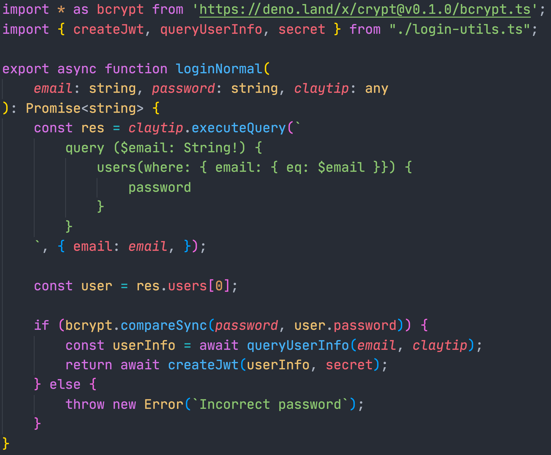 Claytip comes ready with logic for common authentication patterns like using OAuth to issue JWT tokens. So you can get started right away without digging through docs.